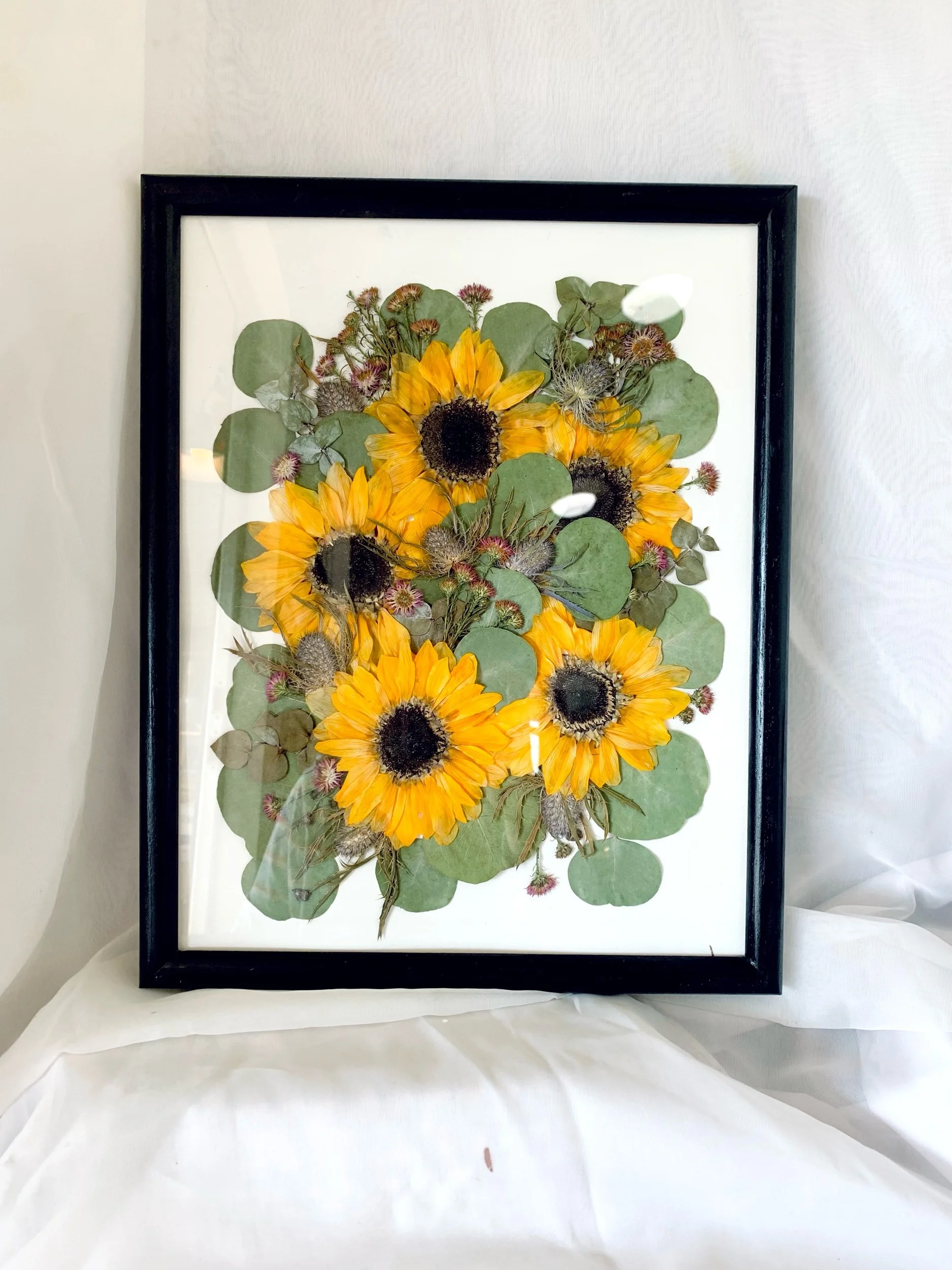 Traditional Pressed Flower Framing is your standard framing style with one piece of glass and your design secured to an art-grade paper.